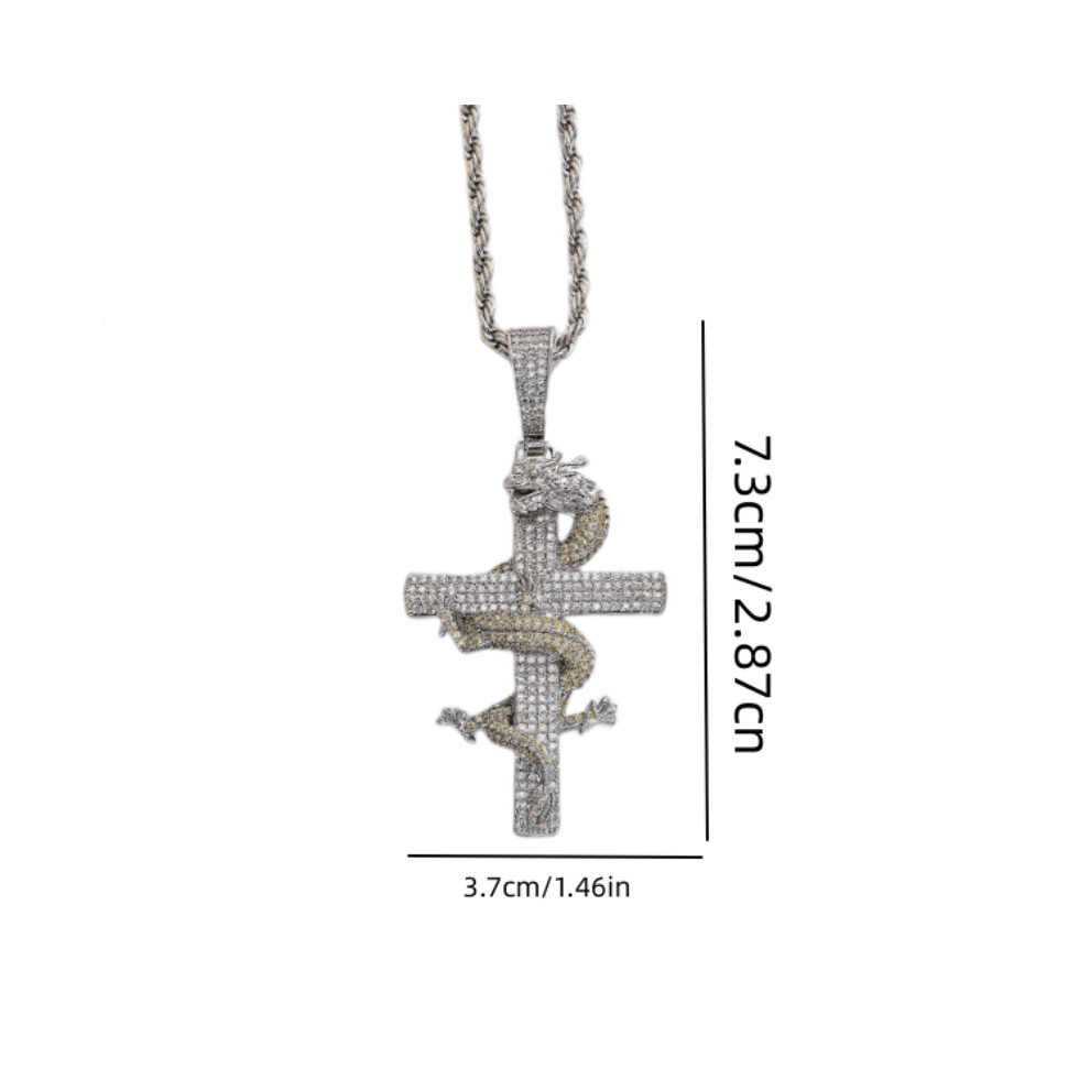 1pc Mens Cross Pendant Necklace Micro Paved Crystal Dragon Cross Pendant Thanksgiving Christmas Birthday For Men Women Friends