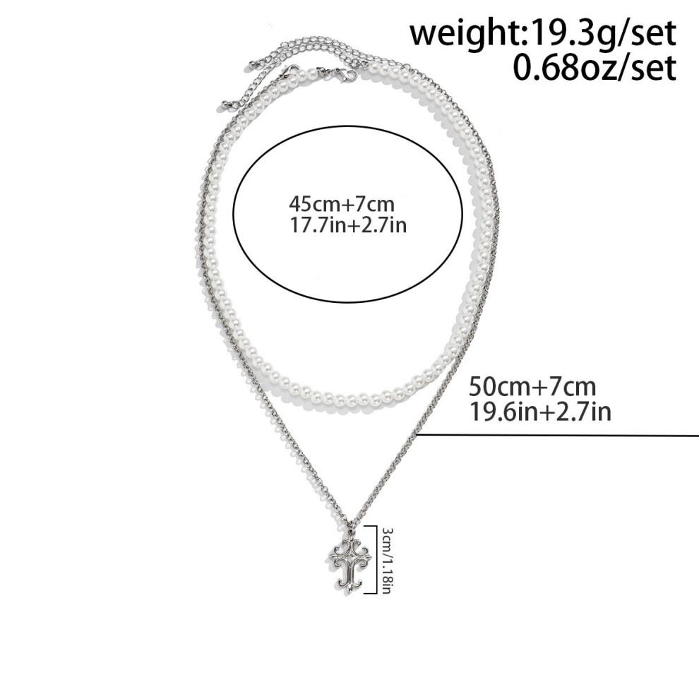 2pc Mens Cross Pendant Necklace Double Pearl Cross Necklace Thanksgiving Christmas Birthday For Men Women Friends