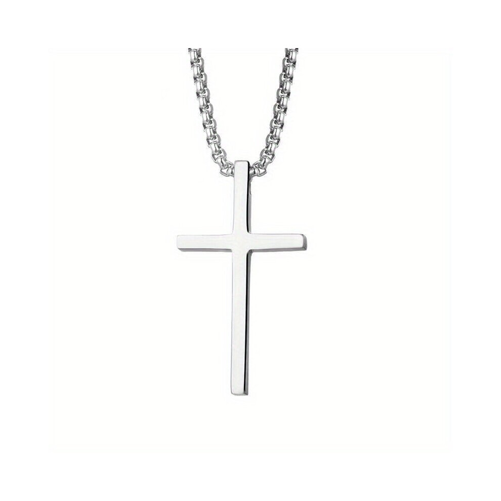 1pc Mens Silver Cross Necklace Stainless Steel Cross Pendant Necklaces Birthday Jewelry For Husband Boyfriend Boy