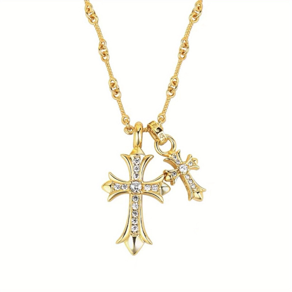 1pc Mens Cross Pendant Necklace Double Cross Set Rhinestone Necklace Long Pendant Sweater Chain Accessory Thanksgiving Christmas Birthday For Men Wom