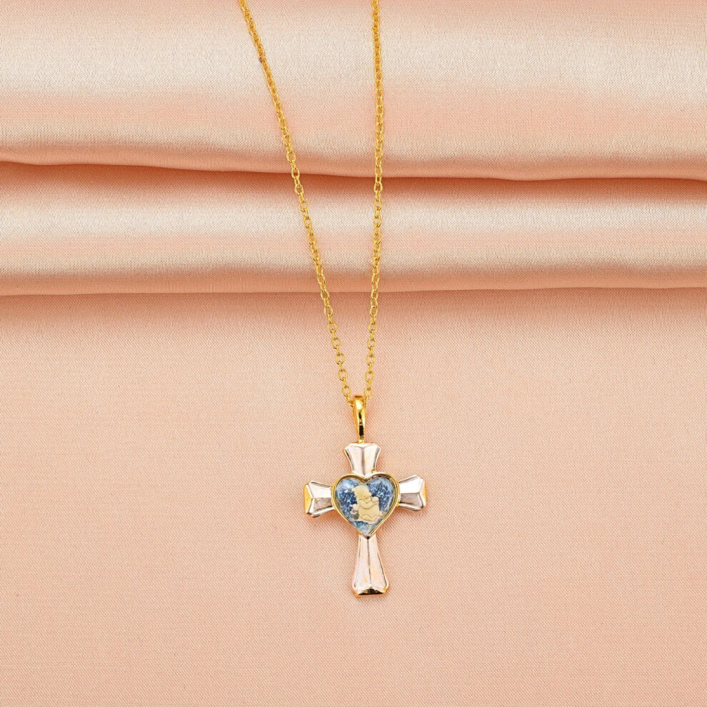 1pc Mens Cross Pendant Necklace Golden And Silver Cross Creative Character Pendant Thanksgiving Christmas Birthday For Men Women Friends