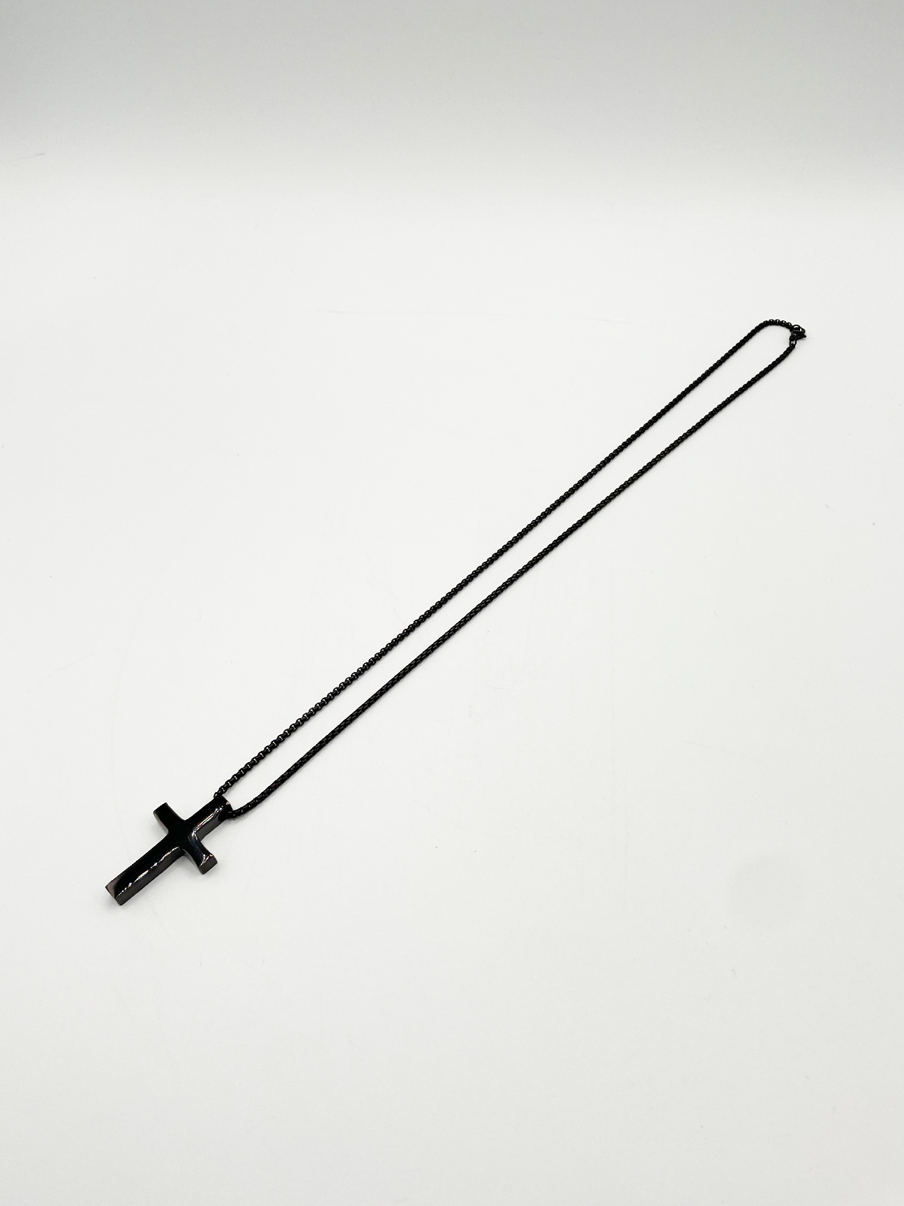 SVNX Mens Cross Pendant Necklace in Black Metal - One Size
