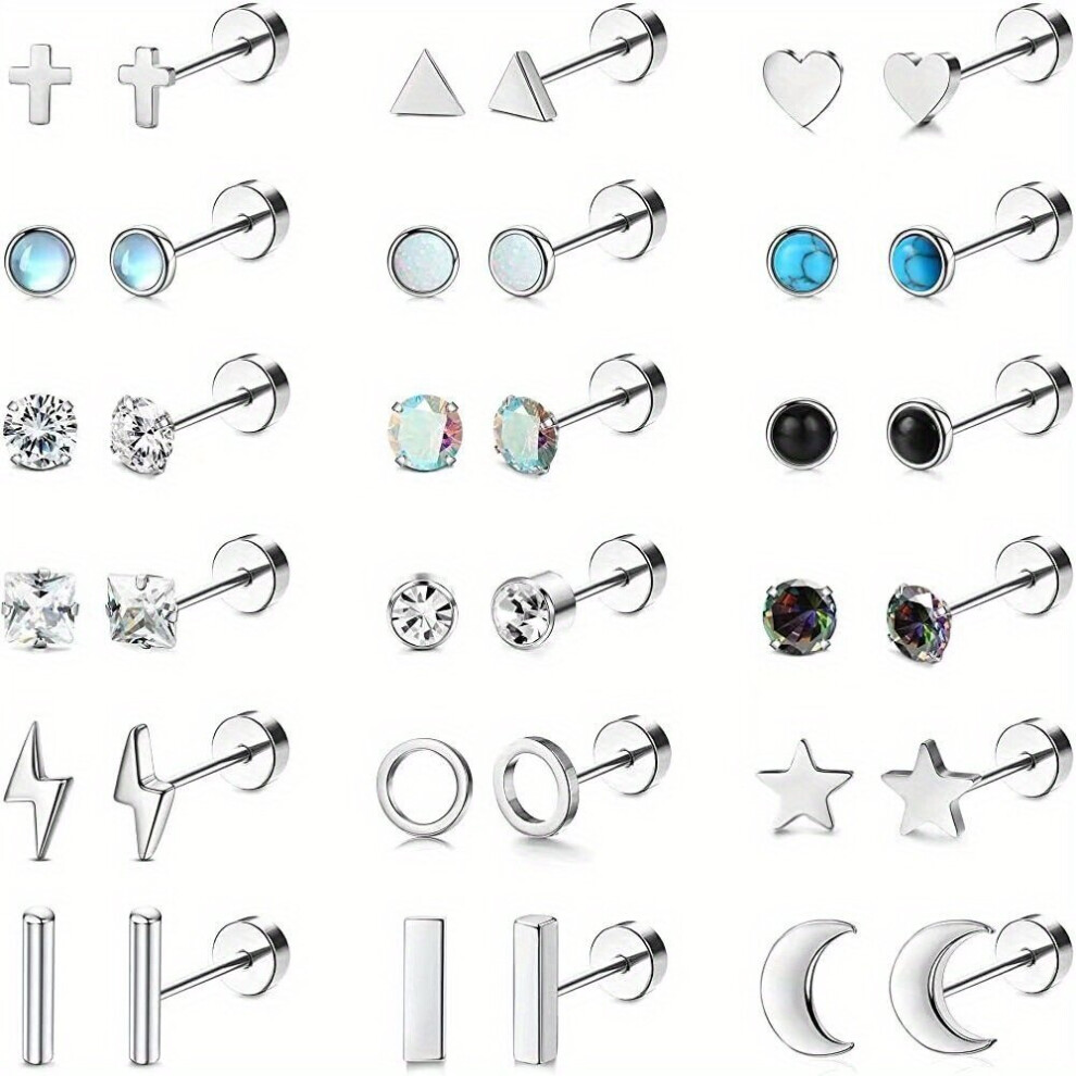 18pairs pack Mens Stainless Steel Zircon Stud Earrings Star Moon Heart shaped Cartilage Studs Style Universal Style For Boys