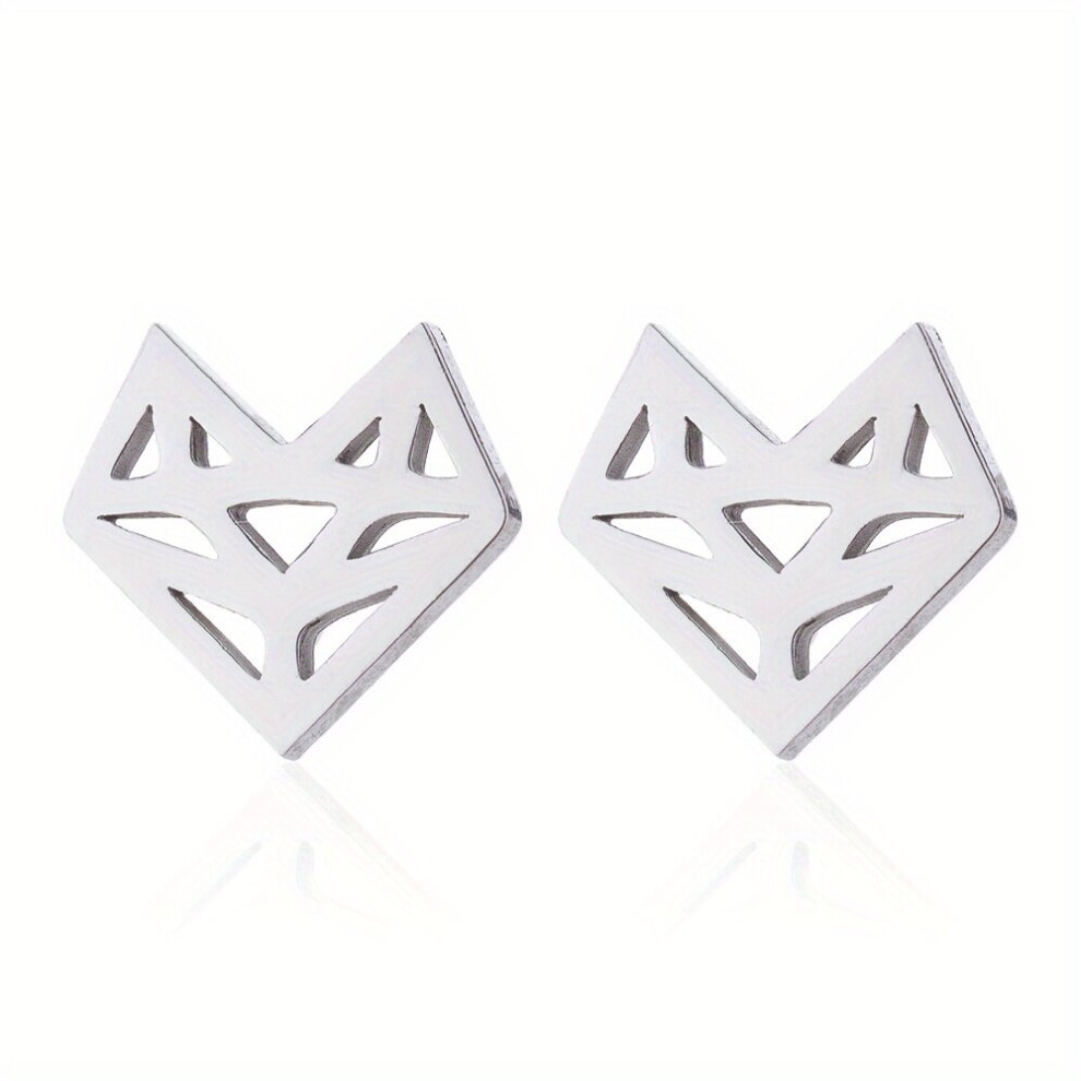 2pcs pair Mens Stainless Steel Fox Ear Studs Geometric Hollowed Out Retro Compact Earrings