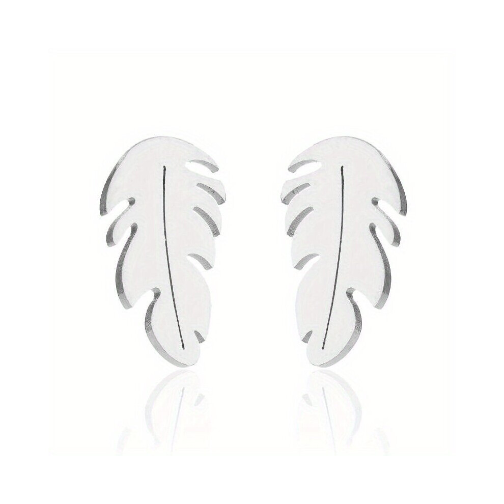 1pair Mens Stainless Steel Retro Niche Feather Studs Earrings