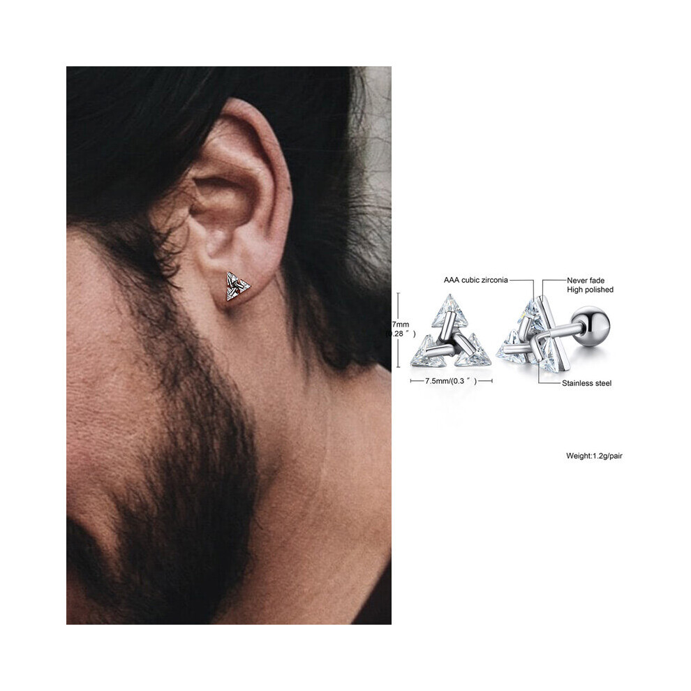 Men Stud Earring ,Triangle Pierced Crystal Zircon Stud Earrings,Stainless Steel Tiny Minimalist Studs for Mens Women Jewelry