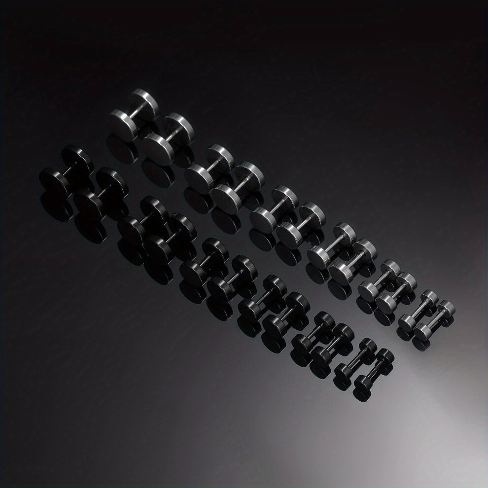 12pairs set Barbell Mens Earrings Flat Back Screw Studs Titanium Pierced Studs Stainless Steel No Stones