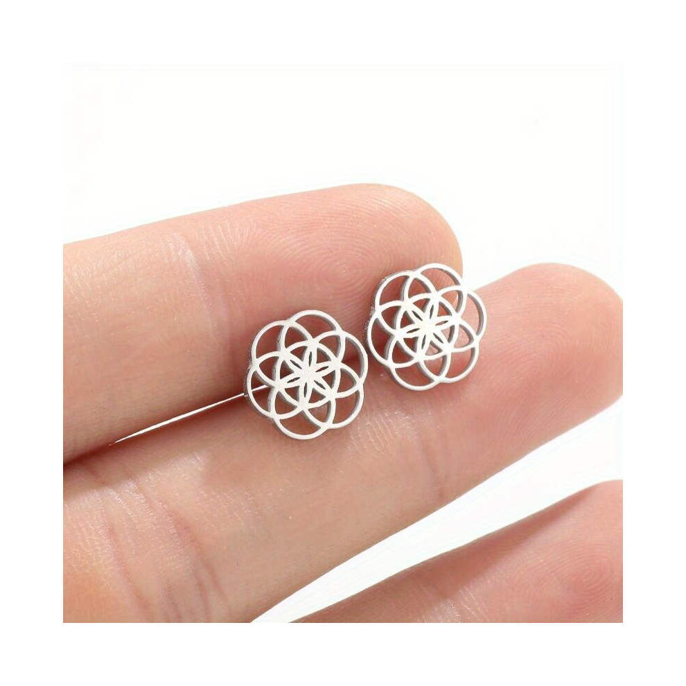 2pcs pair Mens Hot Selling Circular Geometric Circle Stainless Steel Material Mens Hollowed Out Flowers Circular Rotating Ear Studs Earrings
