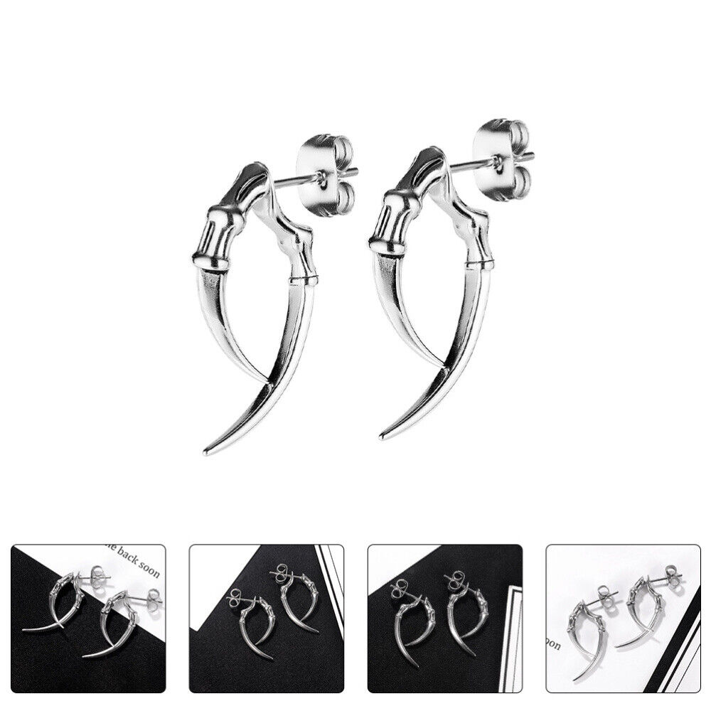 Sheep Horn Ear Studs Mens Gothic Earrings Croissant Bouncy Pendant