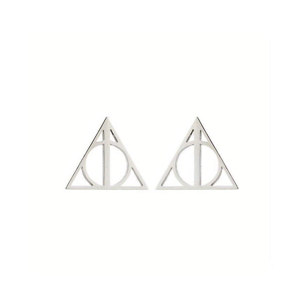 2pcs pair Mens Stainless Steel Retro Creative Hollowed Out Triangle Studs Earrings