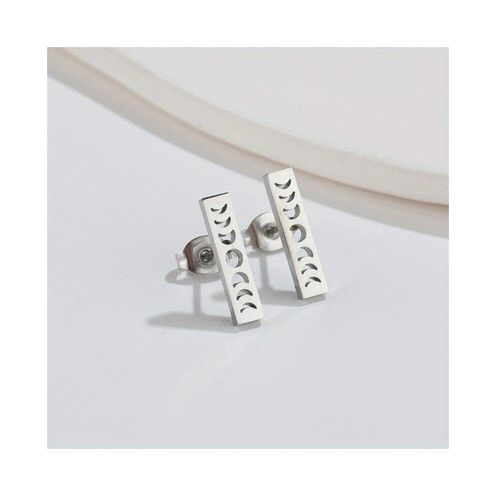 Geometric Rectangular Hollowed Out Moon Sun Earrings Niche Mens Ear Studs