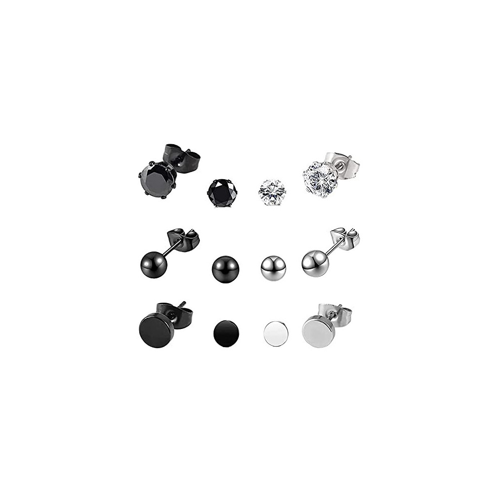 6 Pairs Mens Earrings Studs Black Ear Studs CZ Stud Earrings Stainless Steel Ca