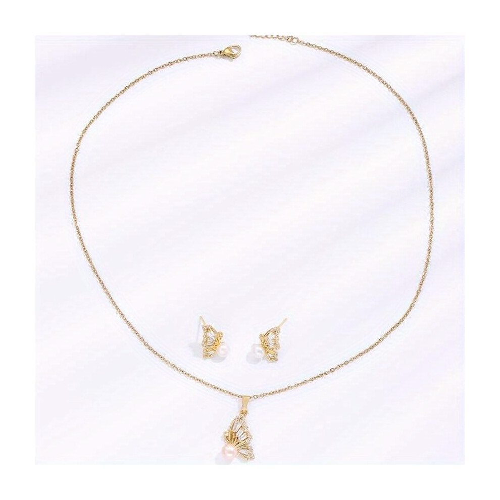 2 Pcs And Mens Jewelry Half Butterfly Pendant Necklace Earrings Studs For Men And Women Sets Jewelry And For Men