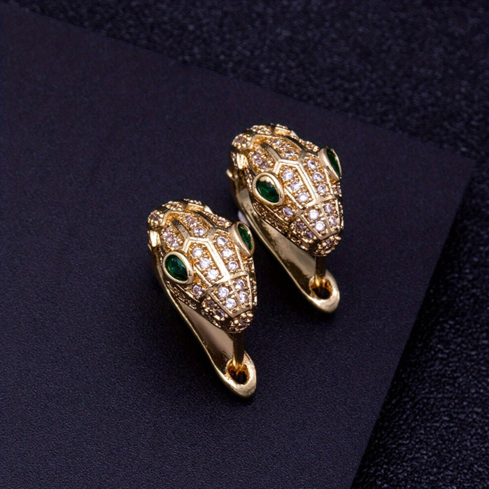 2pcs pair Mens Snake Shape Golden Plated Zircon Earrings Ear Studs Jewelry For Women