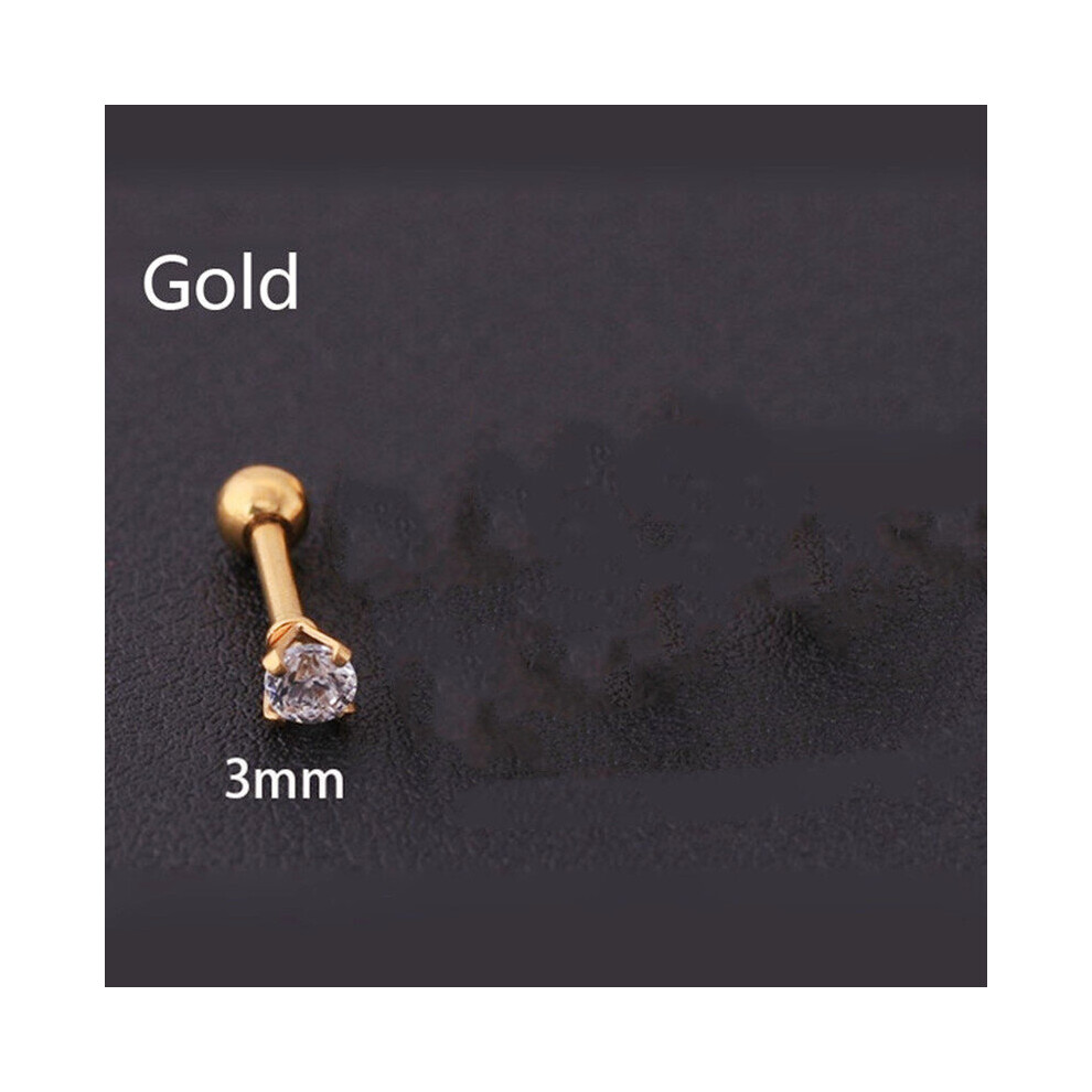 3mm Pair GOLD small round Ball Surgical Stainless Steel Mens Womens Unisex Upper Ear Earrings Studs Butterfly Back