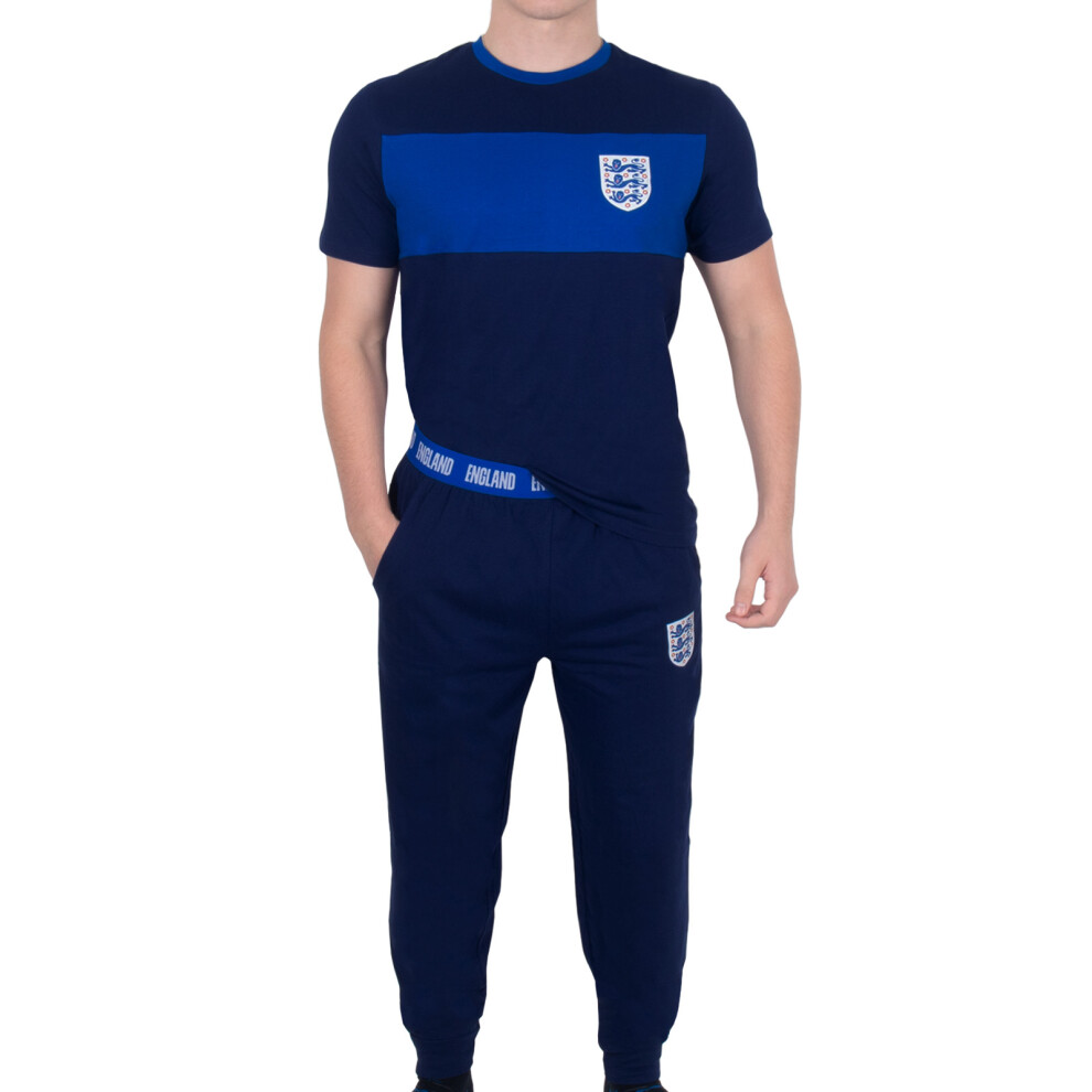 (Navy Blue, Large) England Men's Pyjamas - Official Football Gift for Adults Premium Loungewear Set