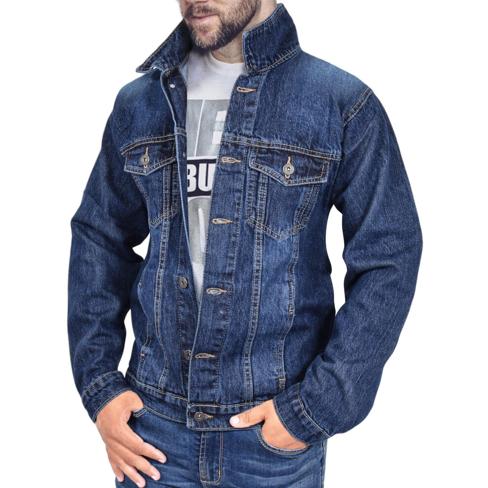 (3XL, Dark Blue) Mens Jacket Fashion Denim Jeans Long Sleeves Coat
