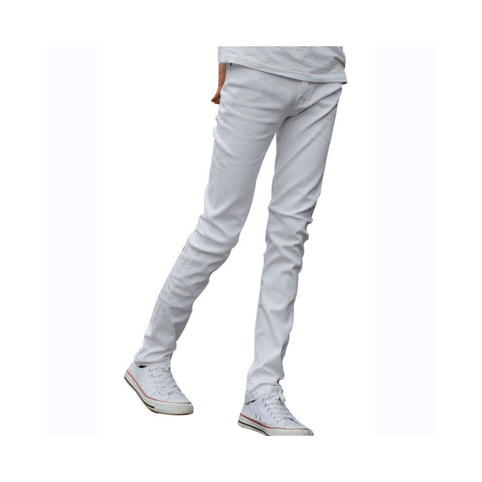 Funky Mens Fashion Skinny Jeans Pencil Pants Elastic Washed Faded Slim Fit Brand Clothing White Jeans Trouser For Young Men