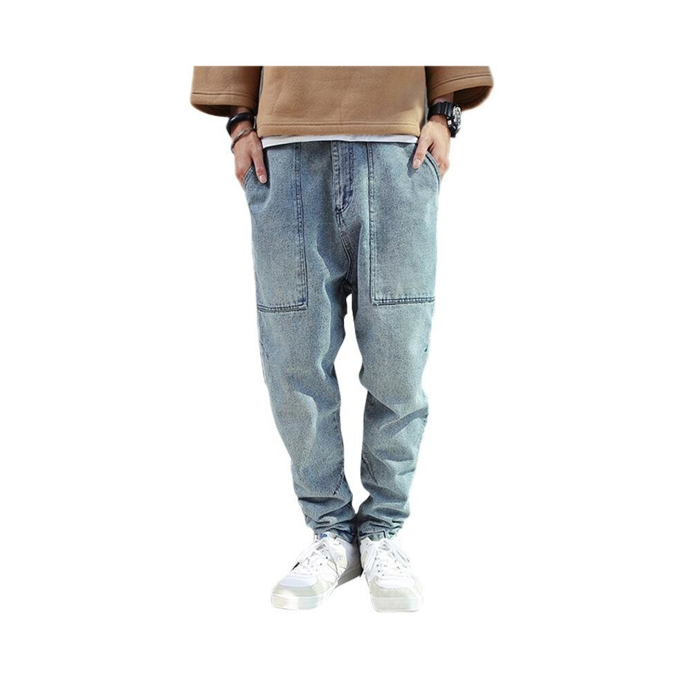 Sawmew Mens Baggy Jeans Hip Hop Jeans Teenager Boy Streetwear Skateboard Y2K Pants Fashion Skater Skateboard Pants (Color : Blue, Size : L)