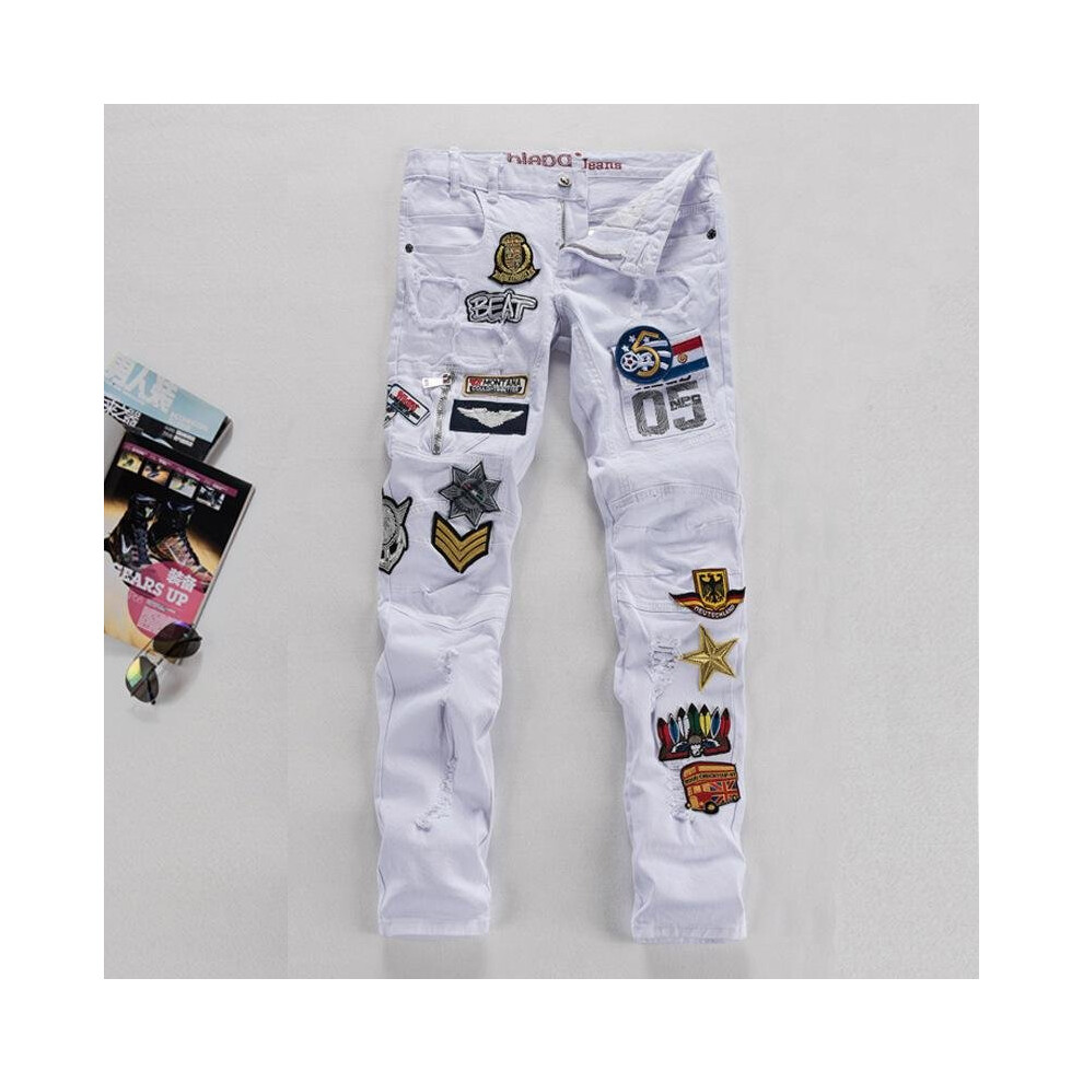 2016 Men's Fashion Jeans Brand Men's Pants Slim Skinny Jeans Pencil Pants Patchwork 01Y868