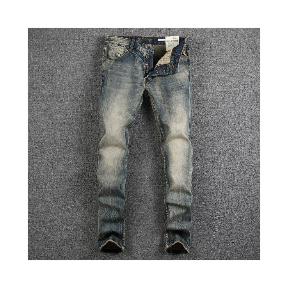 Italian Style Fashion Mens Jeans High Quality Retro Design Classic Denim Jeans Men Slim Fit Casual Buttons Pants Stretch Jeans