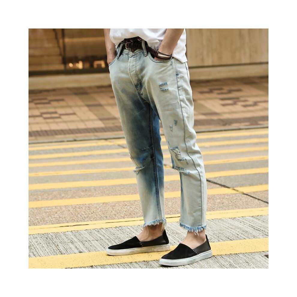 Washed jeans men brand regular vintage men\'s ripped hole jeans English style fashion mens jeans pants casual denim trousers