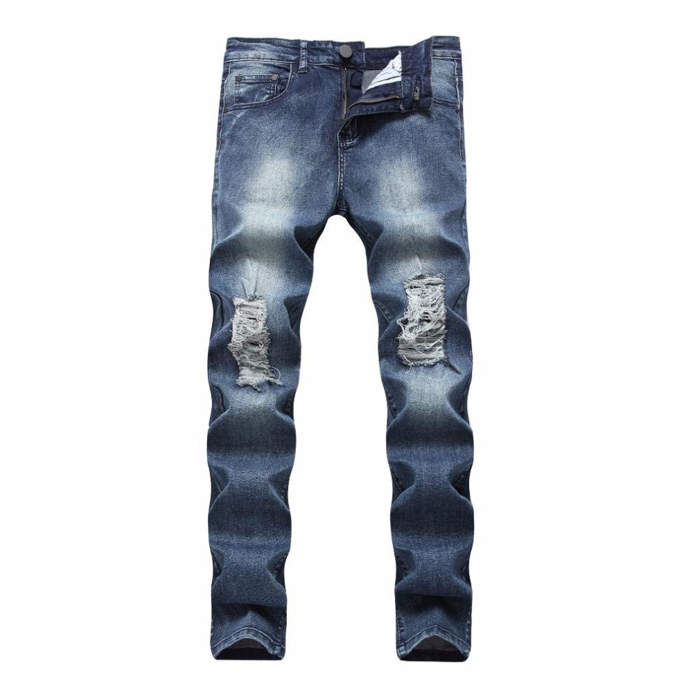 Fashion Mens Denim Jeans Spring Autumn Hole Straight Destroyed Trousers Slim Casual Biker Pants Skinny Men Clothing