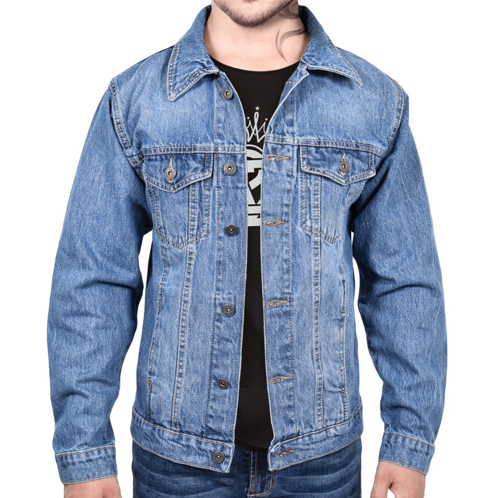 (M, Light Blue) Mens Jacket Fashion Denim Jeans Long Sleeves Coat
