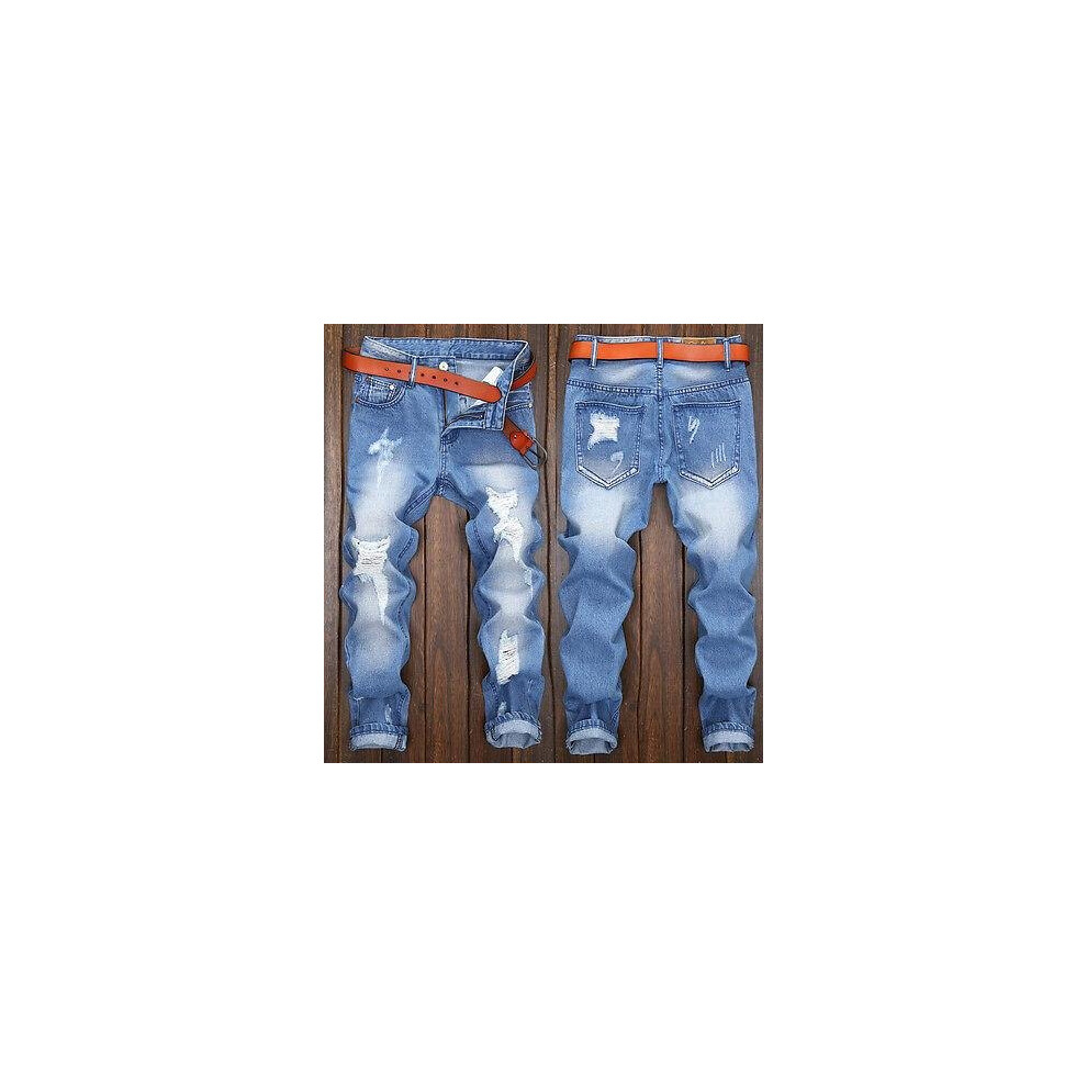 Fashion Mens Jeans Clearance Ripped Regular Fit Straight Leg Jean Casual Cotton Stretch Ripped Hole Trousers Jeans Pants Full Length Pants,Blue