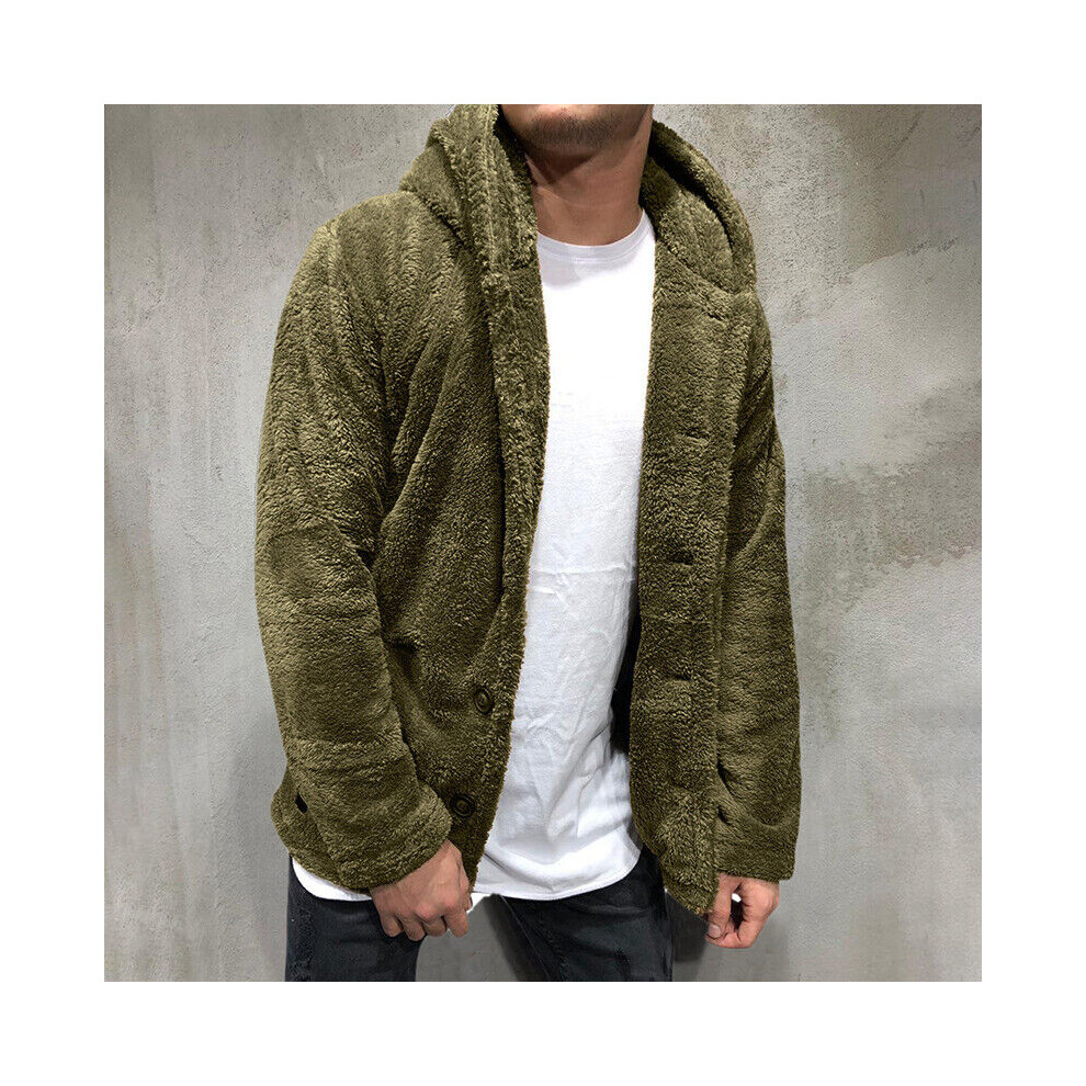(Army Green, L) Mens Teddy Bear Fluffy Fur Fleece Hoody Cardigan Hoodie Winter Warm Coat Jacket