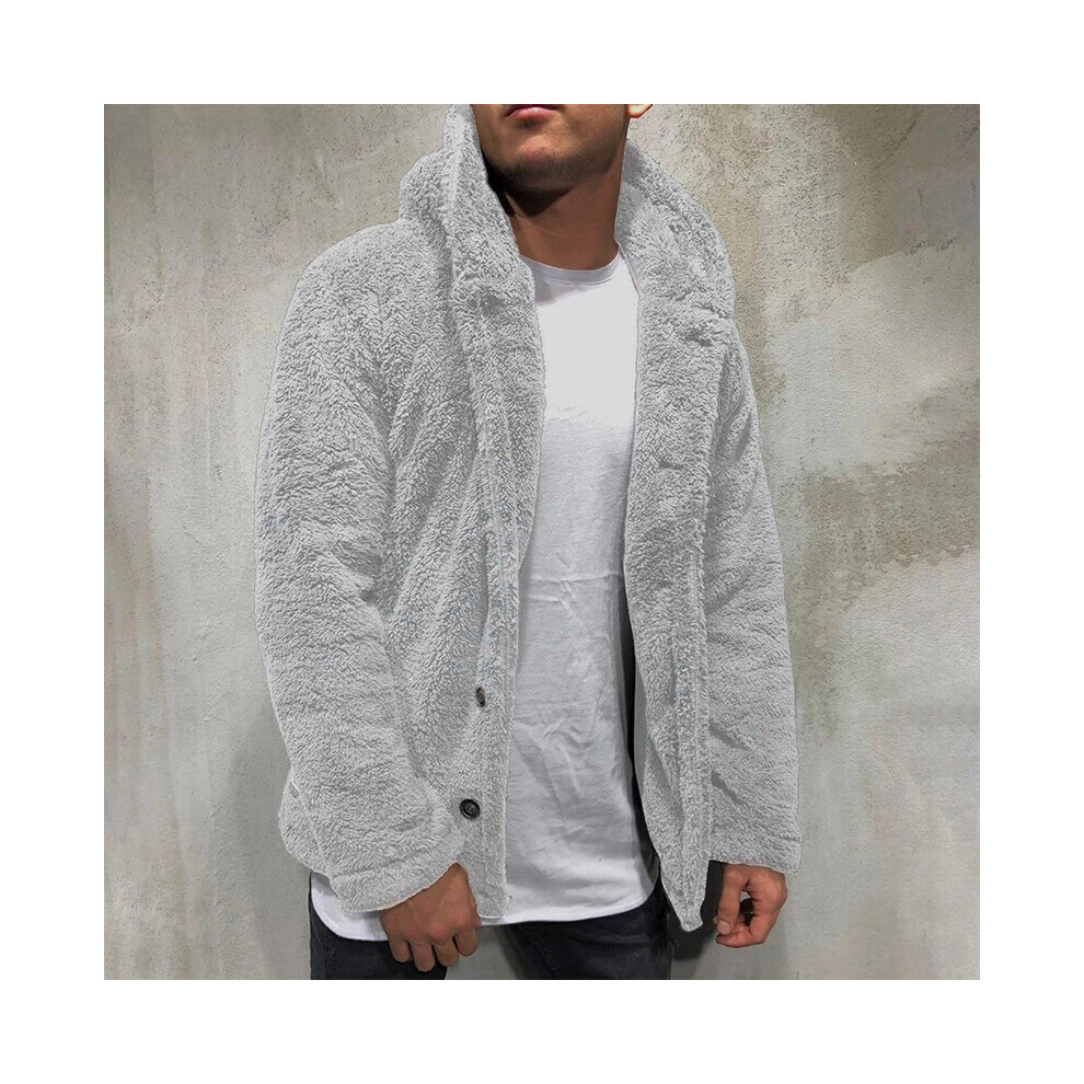 (Gray, 3XL) Mens Teddy Bear Fluffy Fur Fleece Hoody Cardigan Hoodie Winter Warm Coat Jacket