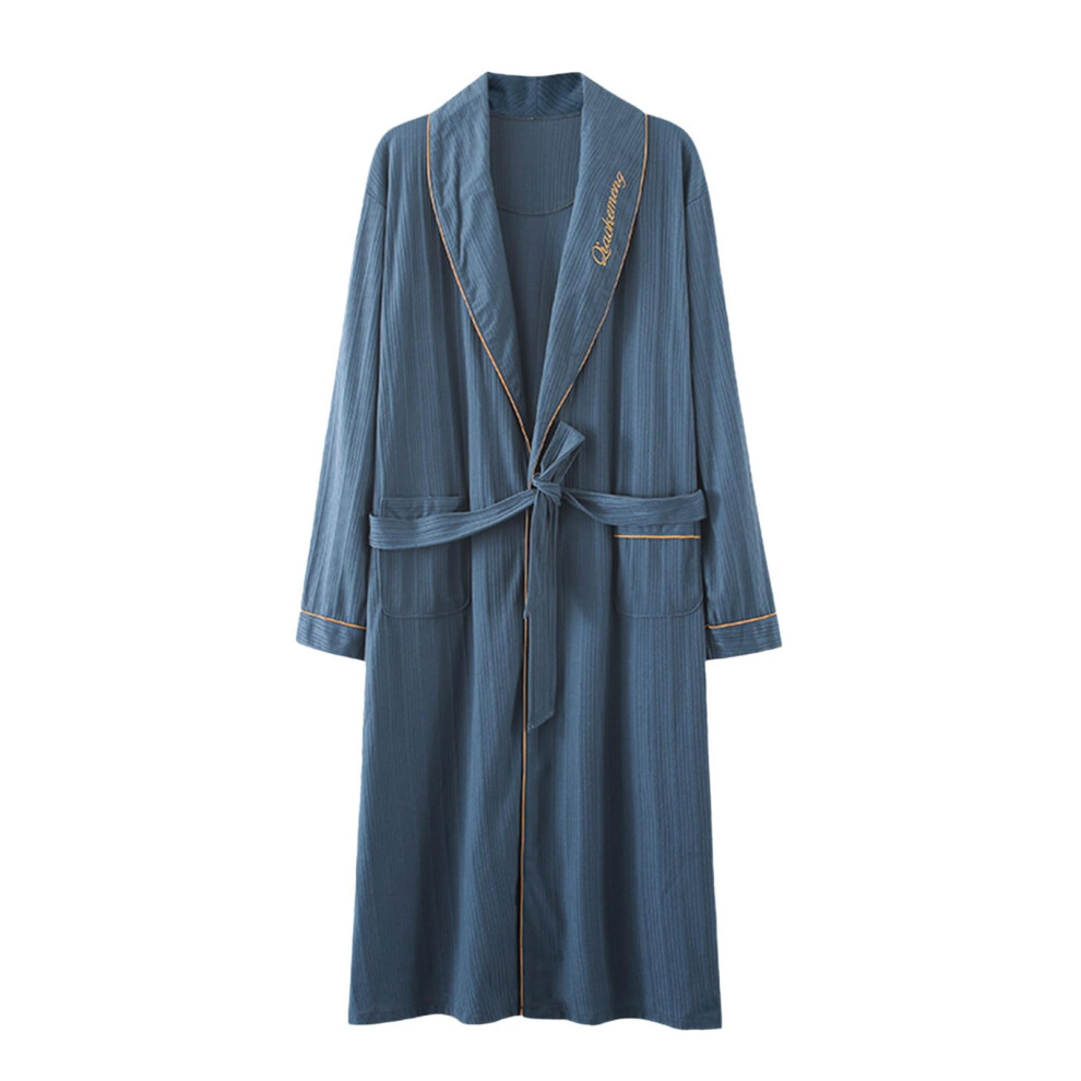 Men's Long Dressing Gown Cotton Fluffy Terry Cloth Navy XXL House Coat Travel Bathrobe