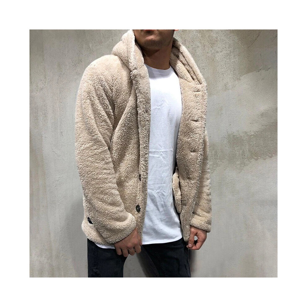 (Apricot, L) (Apricot, M) Men's Winter Warm Faux Fur Fluffy Jacket Long Sleeve Hooded Coat Plush Outwear