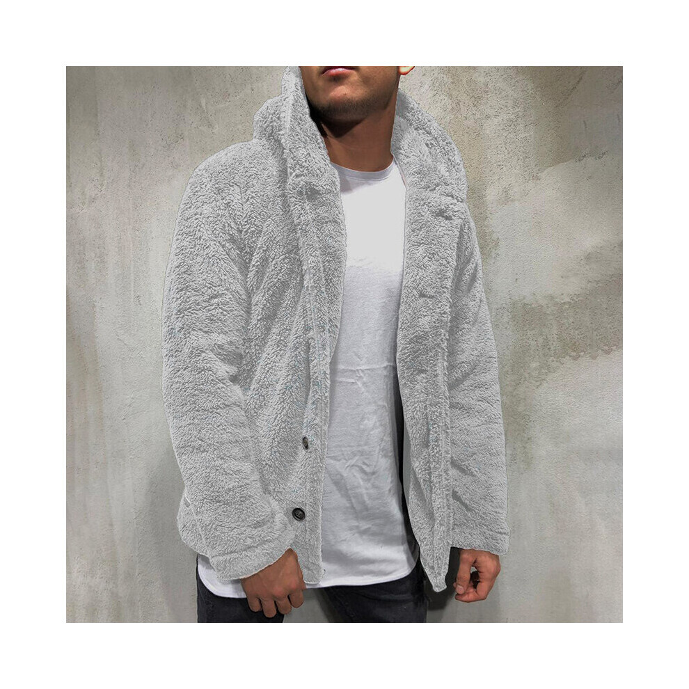 (Gray, M) Mens Teddy Bear Fluffy Fur Fleece Hoody Cardigan Hoodie Winter Warm Coat Jacket