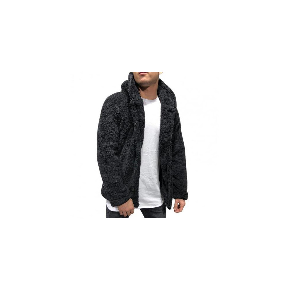 (Black, M) Mens Teddy Bear Fluffy Fur Fleece Hoody Cardigan Hoodie Winter Warm Coat Jacket
