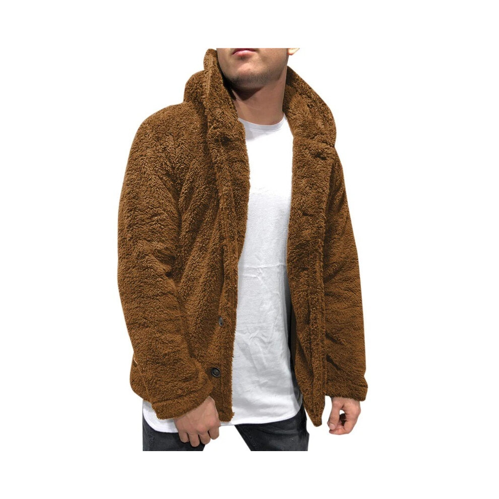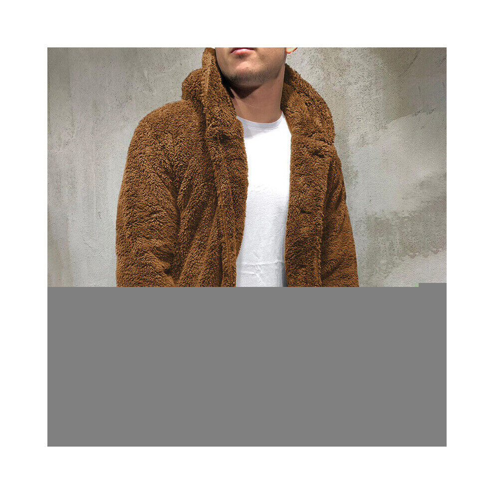 (Coffee, M) (Apricot, M) Men's Winter Warm Faux Fur Fluffy Jacket Long Sleeve Hooded Coat Plush Outwear