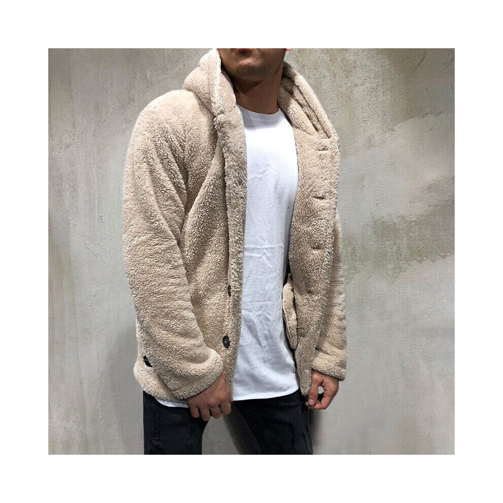 (Apricot, XL) (Apricot, M) Men's Winter Warm Faux Fur Fluffy Jacket Long Sleeve Hooded Coat Plush Outwear
