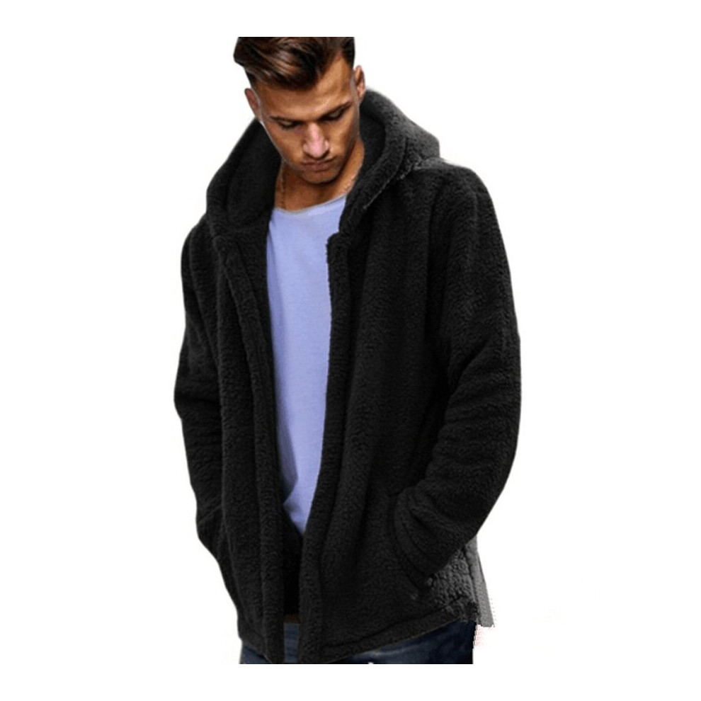 (Black, UK Large) Men's Fluffy Fleece Hoodie Warm Teddy Jacket Winter Autumn Casual Coat Gift