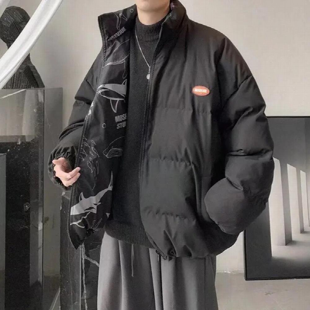 Mens Oversize Fluffy Jacket Padded Down Zipper Streetwear Teenager Husband Autumn Jacket Warm Outerwear Parkas Bubble Male Coat