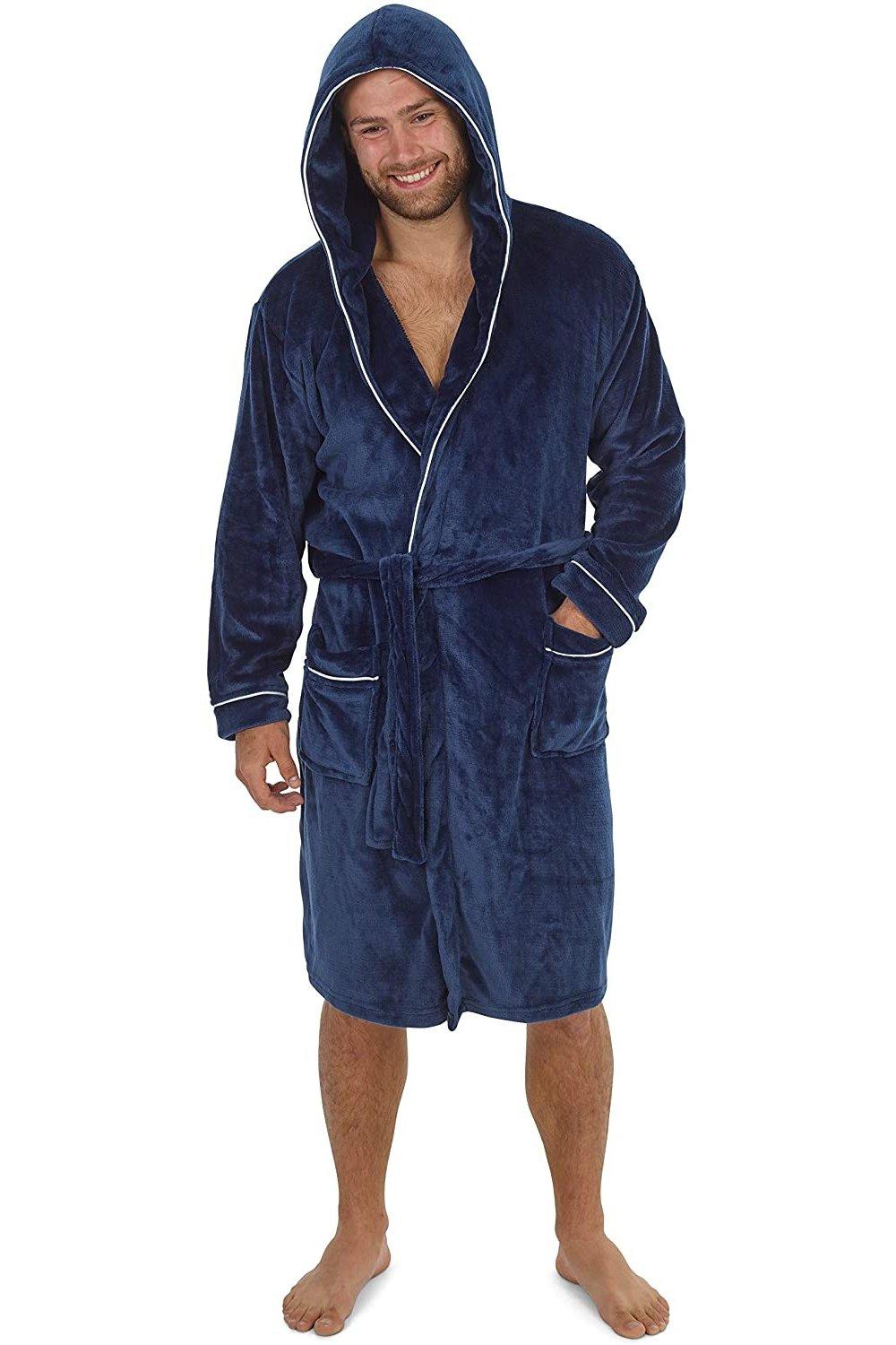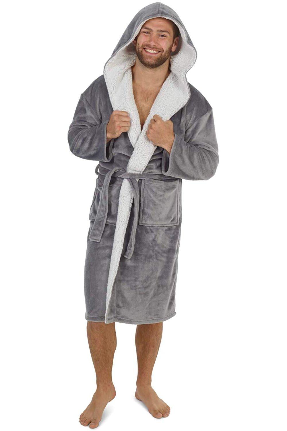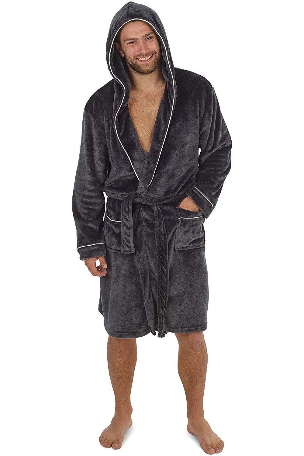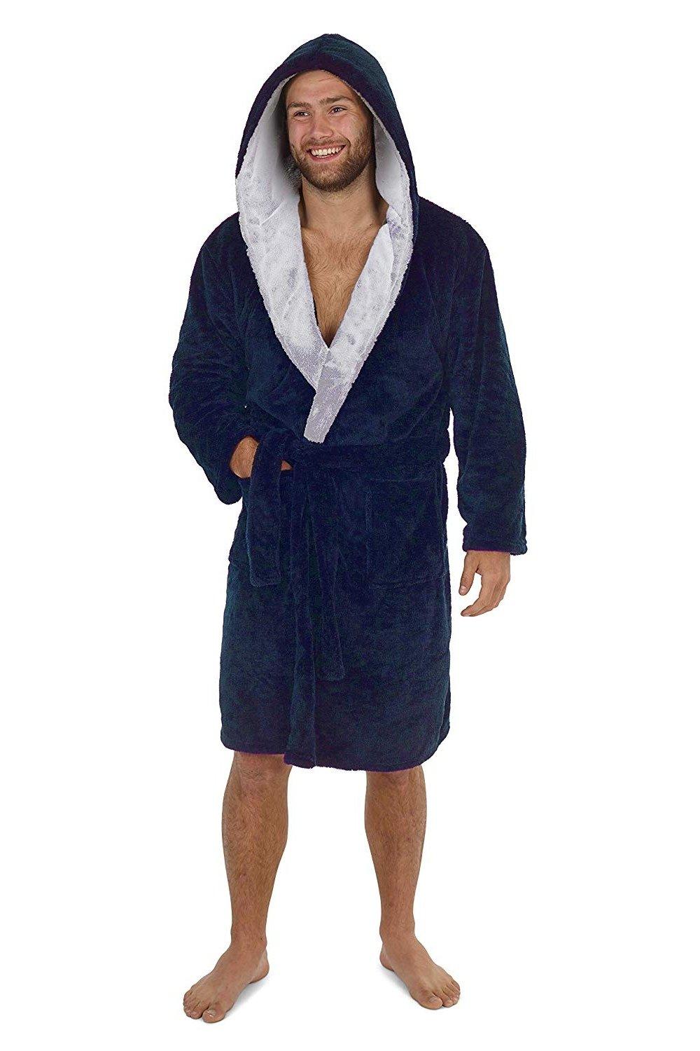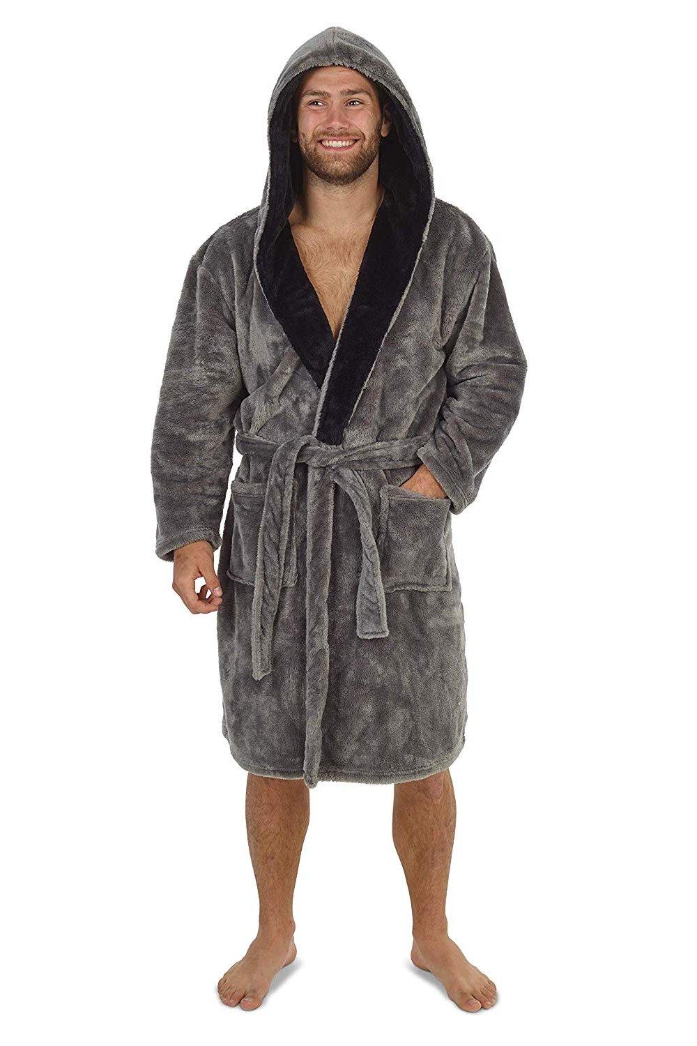 look now Mens EX STORE Dressing Gown Hooded Snuggly Luxury Thermal Fluffy Soft Cozy Robes (UK, Alpha, M, Regular, Regular, 31908 - Gown)