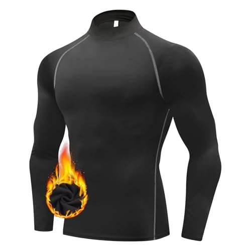 Sillictor Thermal Tops for Men Long Sleeve Turtleneck Ski Base Layer Mens Quick Dry Cycling Running Golf Football Underlayer Men Fleece Compression Shirts,Muscle Support High Wicking 33237 Black S