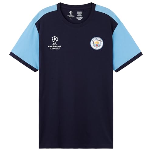 MANCHESTER CITY F.C. Men's T-Shirts, Short Sleeve Soft Crew Neck Football Shirt (L, Navy/Blue)