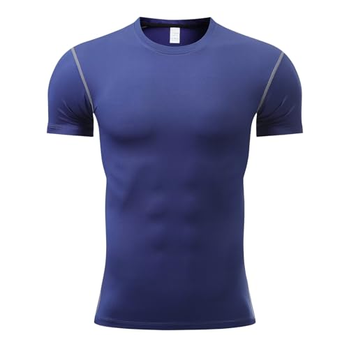 Sillictor Compression Tops for Men Short Sleeve Running Top Mens Football Training Tops Sports Gym T Shirts Men Base Layer Top for Golf Hiking Quick Dry High Wicking Muscle Support 3321 Navy L