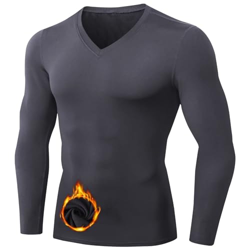 Sillictor Thermal Top for Men Long Sleeve Running Ski Base Layer Mens Fleece Tops Quick Dry Compression Thermals Men Underlayer Shirts for Football Golf Hiking,High Wicking Flexible 1511 Grey 2XL