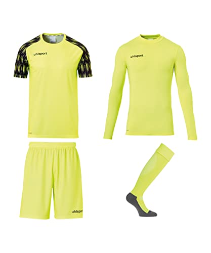 uhlsport Men's Reaction Shirts, Shorts, Base Layer and Football Socks, Complete Goalkeeper Clothing/Set for Adults and Teenagers, Fluo Yellow/Black, 128