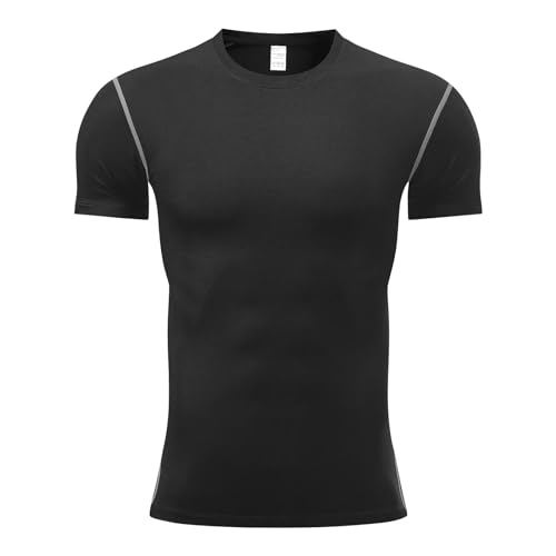 Sillictor Compression Tops for Men Short Sleeve Running Top Mens Football Training Tops Sports Gym T Shirts Men Base Layer Top for Golf Hiking Quick Dry High Wicking Muscle Support 3321 Black XL