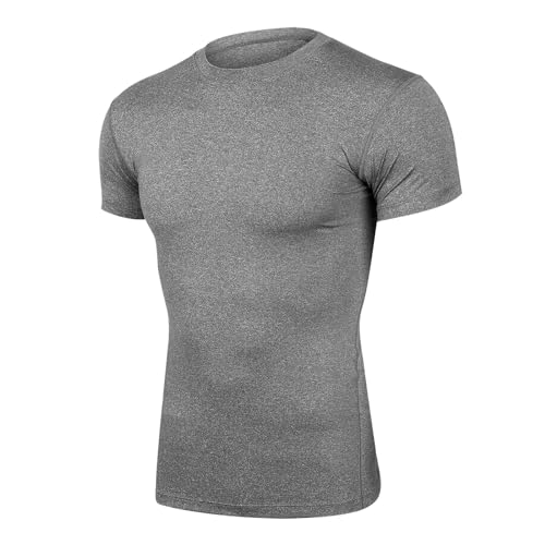 Sillictor Compression Tops for Men Short Sleeve Running Top Mens Football Training Tops Sports Gym T Shirts Men Base Layer Top for Golf Hiking Quick Dry High Wicking Muscle Support 3321 Grey XS