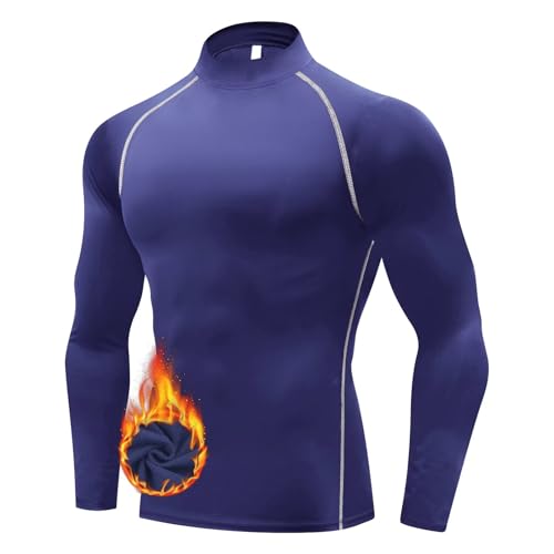 Sillictor Thermal Tops for Men Long Sleeve Turtleneck Ski Base Layer Mens Quick Dry Cycling Running Golf Football Underlayer Men Fleece Compression Shirts,Muscle Support High Wicking 33237 Navy L
