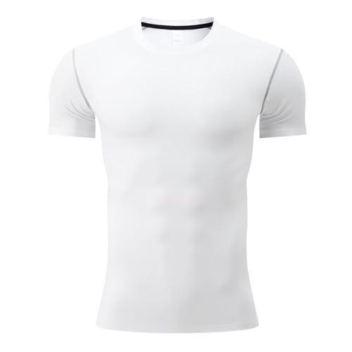 Sillictor Compression Tops for Men Short Sleeve Running Top Mens Football Training Tops Sports Gym T Shirts Men Base Layer Top for Golf Hiking Quick Dry High Wicking Muscle Support 3321 White 2XL