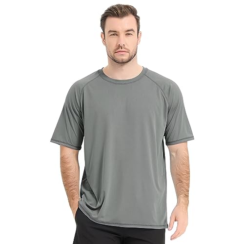 Sillictor Mens Running Tops Short Sleeve UPF 50+ Polyester Sports Gym T Shirts for Men Quick Dry UV Sun Protecion Rash Vest Swimming Hiking Fishing Football Training Shirts, Wicking 3010 Grey L